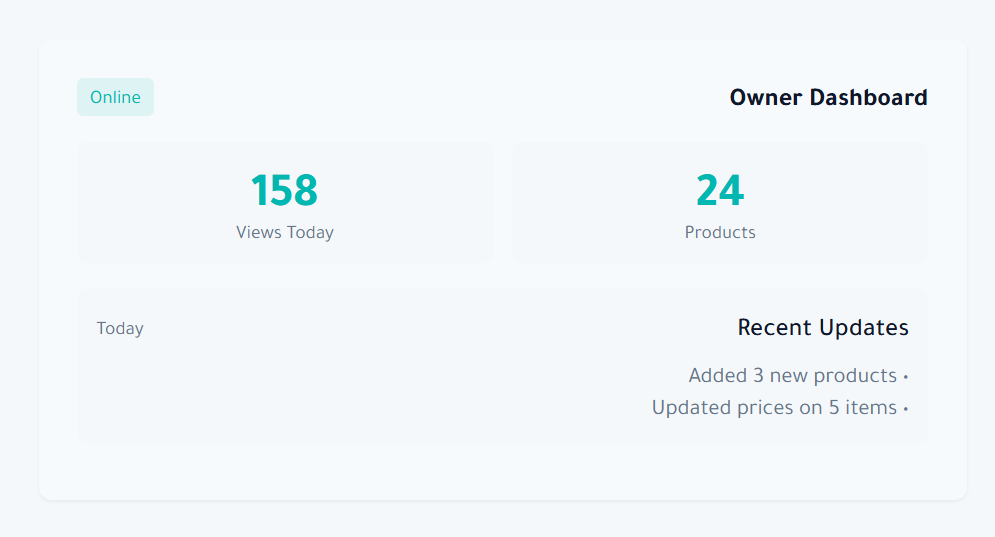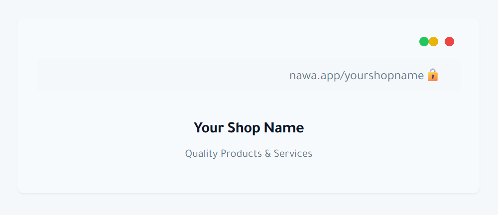 نحن نقدم لك كل ما تحتاجه ميزات رائعة تساعدك على تطوير متجرك وتقديم تجربة أفضل لعملائك 01 رابط مخصص لمتجرك احصل على عنوان إلكتروني خاص وسهل الحفظ والمشاركة مع الزبائن، مثل:nawa.app/اسم-متجرك ✔ سهل الحفظ والمشاركة✔ يعزّز من ظهور علامتك التجارية✔ بدون روابط معقدة أو طويلة 02 عرض المنتجات باللغة العربية دعم كامل للغة العربية في جميع تفاصيل المنتجات وعناصر الواجهة. تواصل بسهولة مع العملاء الناطقين بالعربية. ✔ دعم الكتابة من اليمين إلى اليسار (RTL) ✔ إمكانية إدخال أسماء ووصف المنتجات باللغة العربية ✔ بدون روابط معقدة أو طويلة 03 الوصول عبر رمز QR أنشئ رموز QR فريدة تُوصِل الزبائن مباشرة إلى صفحة محلك. ما عليهم سوى مسح الرمز بكاميرا الهاتف. ✔ وصول فوري إلى صفحة المحل ✔ يتضمن 5 بطاقات QR ✔ إمكانية تحميل وطباعة رموز إضافية 04 لوحة تحكم لصاحب المحل قم بإدارة متجرك بالكامل من لوحة تحكم سهلة الاستخدام. أضف المنتجات، حدّث الأسعار، وتابع زيارات الزبائن. ✔ إدارة بسيطة للمنتجات ✔ تحليلات وإحصائيات الزوار ✔ تنظيم سهل للفئات تصميم متجاوب مع الجوال متوافق مع جميع الأجهزة، وخاصة الهواتف الذكية، لضمان تجربة سلسة للعملاء صور عالية الجودة يمكنك رفع صور جميلة وواضحة لمنتجاتك لعرضها بأفضل شكل وجذب المزيد من الزبائن فئات مخصصة نظّم منتجاتك ضمن فئات مخصصة لتسهيل تصفّحها على العملاء تحديثات فورية عدّل المنتجات والأسعار وسيتم تحديث الصفحة مباشرة بدون تأخير معلومات التواصل أضف رقم واتساب، الهاتف، والموقع الجغرافي ليسهُل على الزبائن التواصل معك دعم فني احصل على المساعدة في أي وقت من خلال فريق الدعم الفني عبر واتساب